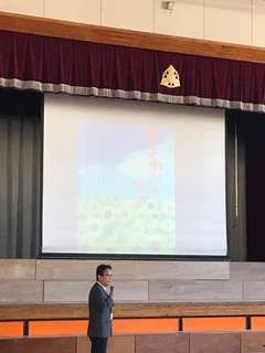 黙祷をし、代表委員の皆さんが『ひまわりのおか』という震災後残された人々の活動や想いを描いた絵本を読み聞かせしてくれました。