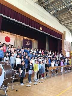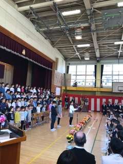 今年の1年生は3クラス95人です。6年生も2年生も精一杯の歓迎の気持ちをもって新入生を迎えていました。