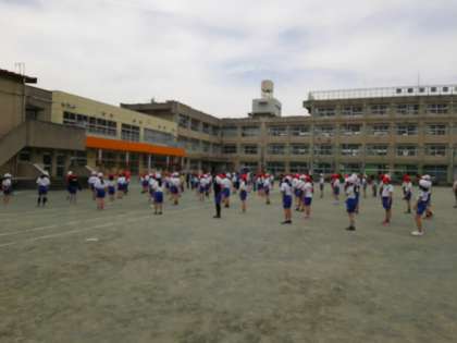 月曜日、学年体育で走る練習をしました。