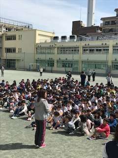 みんなさっと避難し、しっかりお話を聞いていました。命を守る大切な勉強ですね