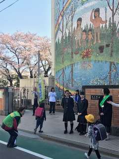 1学期のあいさつキャンペーン最終日でした。4-2の皆さんが当番です。船橋希望中学校の生徒さん、めばえの役員さん、安全ボランティアの方々キャンペーンありがとうございました。