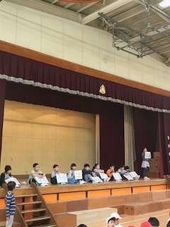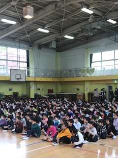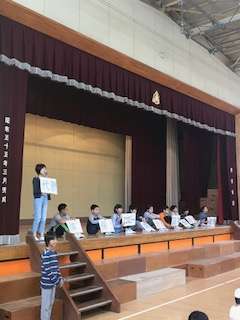 今日は委員会発表集会でした。5.6年生と1〜4年生が向かい合って座り、各委員会の委員長さんが委員の紹介と委員会からのお願いを発表しました。
