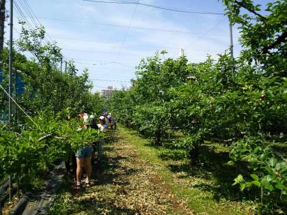 運動会練習の合間をぬって、リンゴ園におじゃましました。