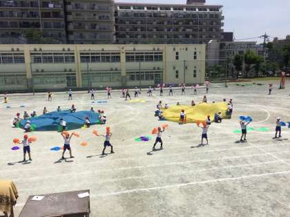 今日は夏を思わせる暑さの中、ついに三つのパート(ダンス、パラバルーン、縄跳び)が合体しました。本番に向け頑張っています。