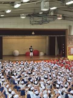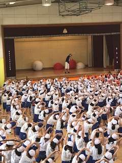 整理体操の練習中です。狭い体育館ですがみんなしっかり練習出来ました。