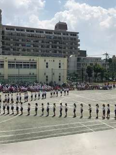 美しい整列からの隊形変化。よく練習していますね。綺麗です。