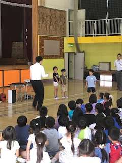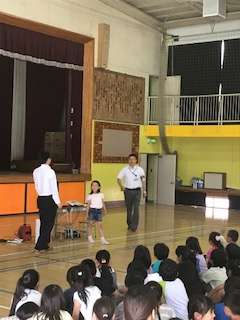 ビデオで勉強した後は、代表の子どもたちによるロールプレイ。実際に不審者に会ってしまった時の対応の仕方を勉強しました。