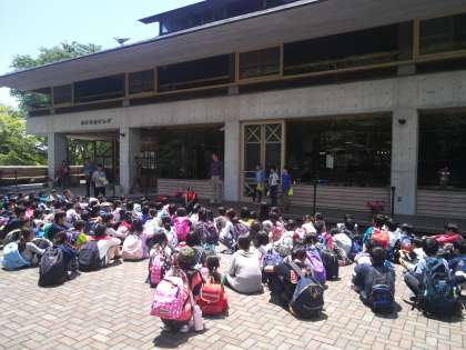 ふじやまビレジに無事つきました。学年で集合写真を撮ってから、お昼を食べました。