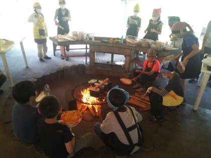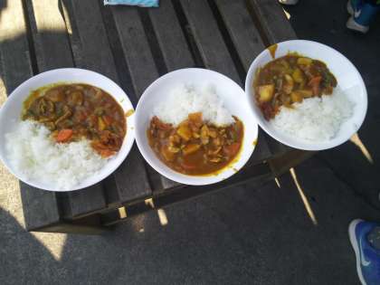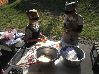 飯ごう炊さんが始まりました。それぞれの役割を一生懸命に取り組んでいました。美味しいカレーの出来上がりです。