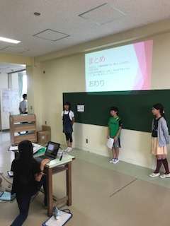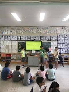 これは5-1の総合的な学習の時間です。『川場村について調べよう』で最後のまとめとして来年川場村に行く4年生に川場村のことを伝える練習をしています。みんな立派な発表をしていました。本番が楽しみですね。