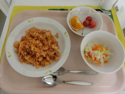 今日はデザートの果物を「さくらんぼ」「バレンシアオレンジ」から好きな方を選べる“セレクト給食”です。
