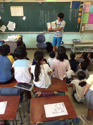 今日は、初めてお父さんによる読み聞かせでした。ユーモアたっぷりの語り口で朝から大笑い、暑さも吹っ飛びました^_^