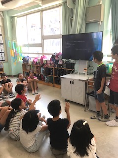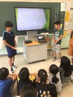 今日は5年生が川場移動教室で学んだことを4年生に発表していました。さすが5年生。立派な発表です。