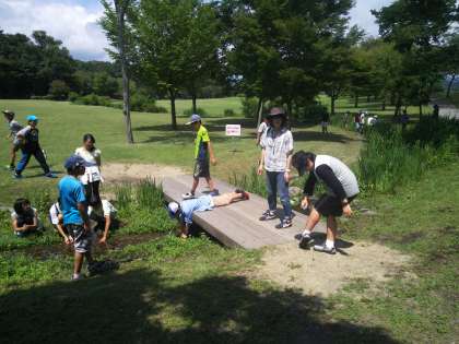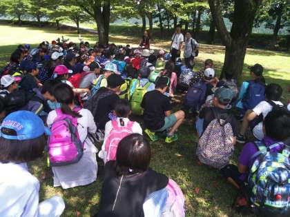 予定より1時間も早く昼食場所に着きました。30分ほど班ごとに遊んでから、お弁当を食べることになりました。