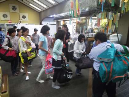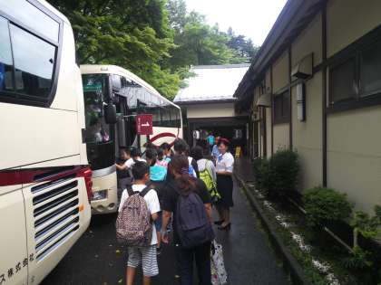 部屋を片付けて、大きな荷物をバスに積んでから、閉園式を行いました。しっかりお礼を言って出発です。