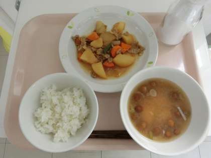 今日も涼しくなりそうだと思っていたら、時折日が差しては気温が上がる一日でした。昨日と天気が逆だったら献立にぴったりでよかったのになぁと思いましたが、お腹を空かせた子どもたちは嬉しそうに肉じゃがをほおばっていました。