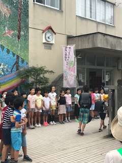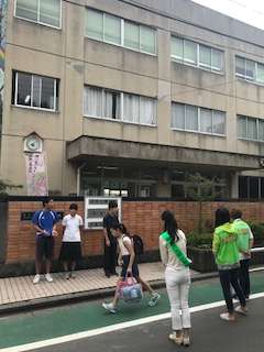 今日も船橋希望中学生が千歳台小学校の門の前に立ち、安全ボランティア、めばえの会の役員の皆さまと一緒に元気なあいさつで子供たちを迎えてくれました。