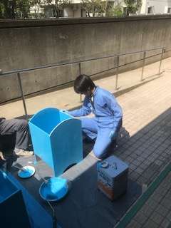 船橋希望中から職場体験にきている中学生です。本校自慢の働き者の主事さんに囲まれて様々なお仕事を体験しています。