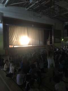 ステージのカーテンの裏で集会委員が演技しているものを当てるクイズでした。