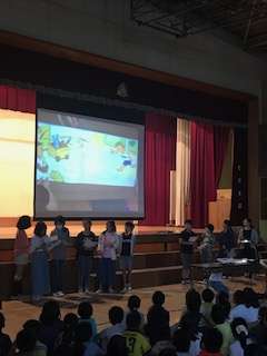 今朝は図書委員会の皆さんによる読み聞かせ集会でした。読書月間のPRをして、『ケンカオニ』という絵本の読み聞かせをしてくれました。1年生から6年生までみんな引き込まれるように真剣に聞いていました。図書委員会の皆さんも聞いてるみんなも素晴らしい読み聞かせ集会を作っていました。さあ、読書の秋を楽しみましょう。