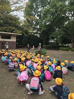 1年生が祖師谷公園に到着しました。頑張って歩きましたね。