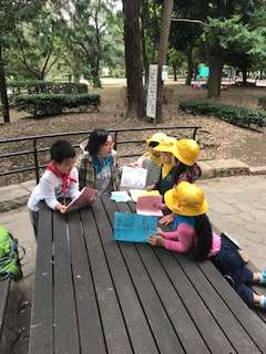 チェックポイント1。今日の遠足で見つけたものを言えるかな?