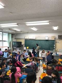 1年生元気に帰ってまいりました。教室で一休みして、遠足の感想を語り合い、予定より少し早めの14時35分頃に