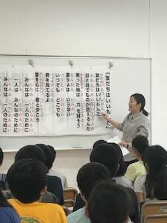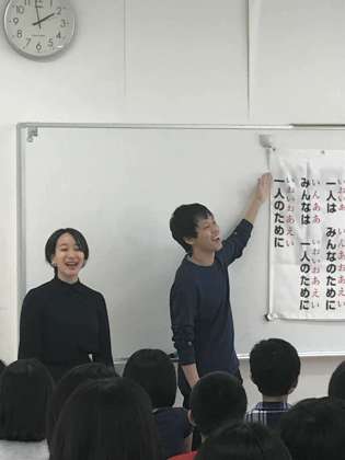今日は劇団四季の役者さんたちが千歳台小学校に来て『美しい日本語の話し方教室』を開いてくださいました。