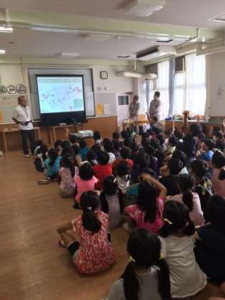 10月11日、町たんけん第三弾として、東京ガスのガスホルダーの見学に行ってきました。まずはじめに、ランチルームでガスの役割やもしものとき…の話を聞き、ガスホルダーについてのDVDを観ました。