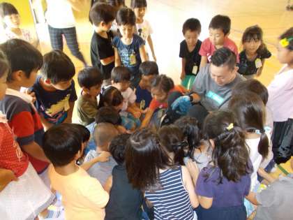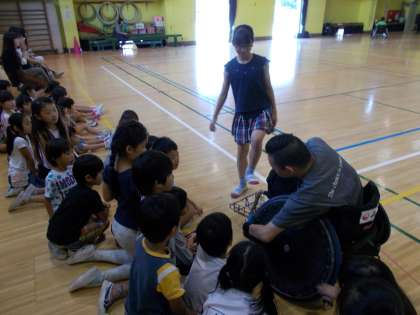 5年生が、パラリンピック・リオ大会、ウィルチェアラグビー銅メダリスト、若山英史選手をお迎えして、体験会を行っていたので、1年生も少し見学させてもらいました。若山選手が1年生の元にも駆け寄ってきてくださり、子どもたちは大喜びでした。