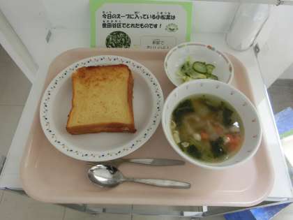 ABCスープは、アルファベットの形をした小さなマカロニが入った塩味のスープです。つまりマカロニスープなのですが、これが子どもたちにとても人気があります。もとから汁物は好んで飲む子が多いのですが、やはり変わったマカロニの形が気を引くようで、友達や自分の名前に使われているアルファベットを探しながら楽しそうに食べていました。