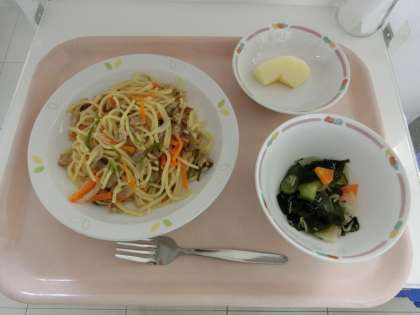 あさり、マッシュルーム、ぶなしめじに、ベーコンや色のよい野菜などを合わせたあっさり風味のスパゲティですが、あさりやベーコンのうまみがきいてとてもおいしく仕上がりました。ボリューム多めだったかな?と思いましたが、子どもたちはたくさんおかわりができて満足そうでした。