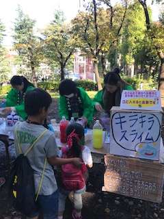 めばえの会の『キラキラスライム』は今年も子供たちに人気のコーナーです。ぶんか村ボランティアクラブのカフェは今年はブックコーナー。素敵なカフェになっていました。