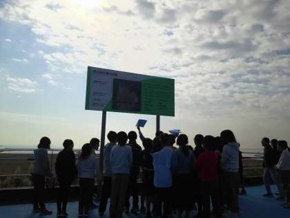埋め立て地の頂上では、バスから降りて景色も眺めました。
