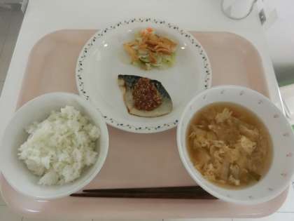 だし汁に浮かぶ卵の様子が叢雲のようだから「むらくも汁」。卵を流し入れる汁物は手軽そうに見えておいしく作るのは意外と難しいのです。(全部浮かんでしまったり、逆に沈んでしまったり、ボソボソになってしまったり…)調理員さん曰く、上手に作るコツは「卵を入れるときにだしを少し沸いた状態にすること」「溶き卵は細く流し入れる」だそうです。スープを作るときなどにぜひ参考にしてみてください。