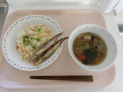 今日は給食では久しぶりのししゃもです。カラッと揚がるように調理員さんが腕をふるってくれました。以前は食べ方がわからなくて骨をとろうとしていた一年生もいたので、今日は食べる前に「ししゃもは頭もしっぽも食べられるので、少しずつ食べてよく噛むように」声かけをしました。自分の経験から、子どもは小魚が苦手なイメージがあったのですが、ほとんどの子がおいしそうに完食していました。