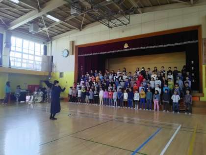 延期になりましたが、四年生音楽朝会の練習風景です。