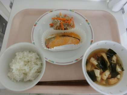 今日は紅葉の季節にちなんで、旬の鮭を使った紅葉焼きです。毎日のように食べているにんじんが、今日はすりおろされた状態で出てきたので、最初は気づかなかった子も多かったです。食べ終わるころに「これにんじんだったの?!」と驚いている子もいました。
