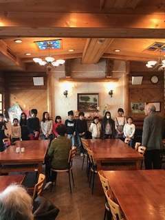 ログハウスにて、おもてなしの合唱を聞いていただきました。