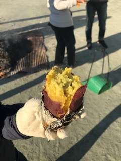 ご覧ください。見事な黄金色の焼き芋が出来上がりました。うーん、美味しそう。運営してくださった遊び場開放委員会とデバンデスの皆さん、ありがとうございました。