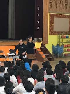 今朝の朝会で5年生が世田谷区海外派遣に行った報告会を行いました。海外派遣は隔年で5年生が各校1名参加します。オーストリアで学んだことを全校のみんなにお話してくれました。貴重な体験談をみんな一生懸命聴いていました。