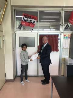 17日日曜日に世田谷子ども駅伝に出場した選手に記録証を渡しました。船橋希望中学生と船橋小、希望丘小の子どもたちとチームを組んで大会に出場しました。