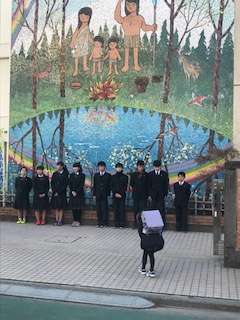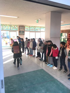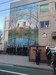 今朝も船橋希望中学生が大勢来てくれました。めばえの会の役員さん、今日の当番の2-3のみんな、様々な場所で「おはようございます」