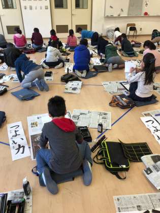 2018年が明けました。3年生は元気いっぱい書き初めに挑みました。作品は各教室前に展示してあります。是非ご覧くださいませ。
