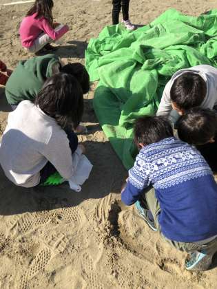 理科では、じしゃくの学習を進めています。意外に暖かい今日は校庭で砂鉄探し。その昔は今のバケツ一杯分の砂鉄て刀が一振できたそうです。