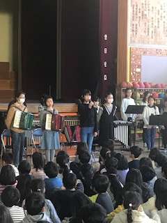 音楽クラブの発表の様子です。ズートピアの主題歌の演奏です。心弾む、美しい合奏を聞かせてくれました。