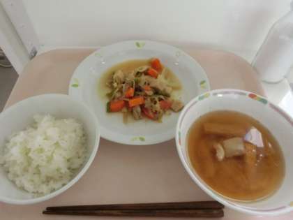 味噌汁にさつまいもが入っているだけ…と言うとその通りなのですが、それが人気のさつま汁です。さつまいもから出た甘みが、みそ汁によりコクを与えてくれるので食べても飲んでもおいしいのです。給食当番がランダムに盛り付けてもできる限りお芋が行きわたるように、給食ではたくさんのさつまいもを使っています。そして調理の際は、しっかり火を通しつつも、煮崩さないように気を付けています。