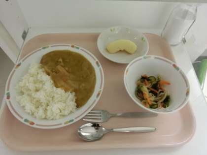 3学期最初のカレーということで、休み時間に献立をチェックした子どもたちが嬉しそうに教室に戻っていく姿が見られました。千歳台では2つの釜でカレーを作り、1〜3年生は辛さ控えめの甘口、4〜6年生は少しだけ後引く辛さが残る味付けにしています。