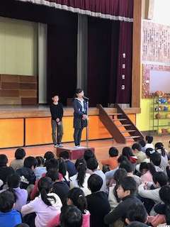 まだ校庭に雪が残る寒い朝ですが、今週も6年生のスピーチで始まりました。アメリカの小学校に通っていた頃のお話、平昌オリンピックのお話、興味深いお話をしてくれる6年生。下級生の素敵なお手本です。