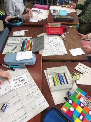 国語では、言葉の力を高めるために、カルタ作りに取り組んでいます。テーマを決めて、それに合った言葉を考え、さらに5.7.5のリズムで文を書きます。班で相談しながら楽しく進めています。今週中に遊べるといいですね。